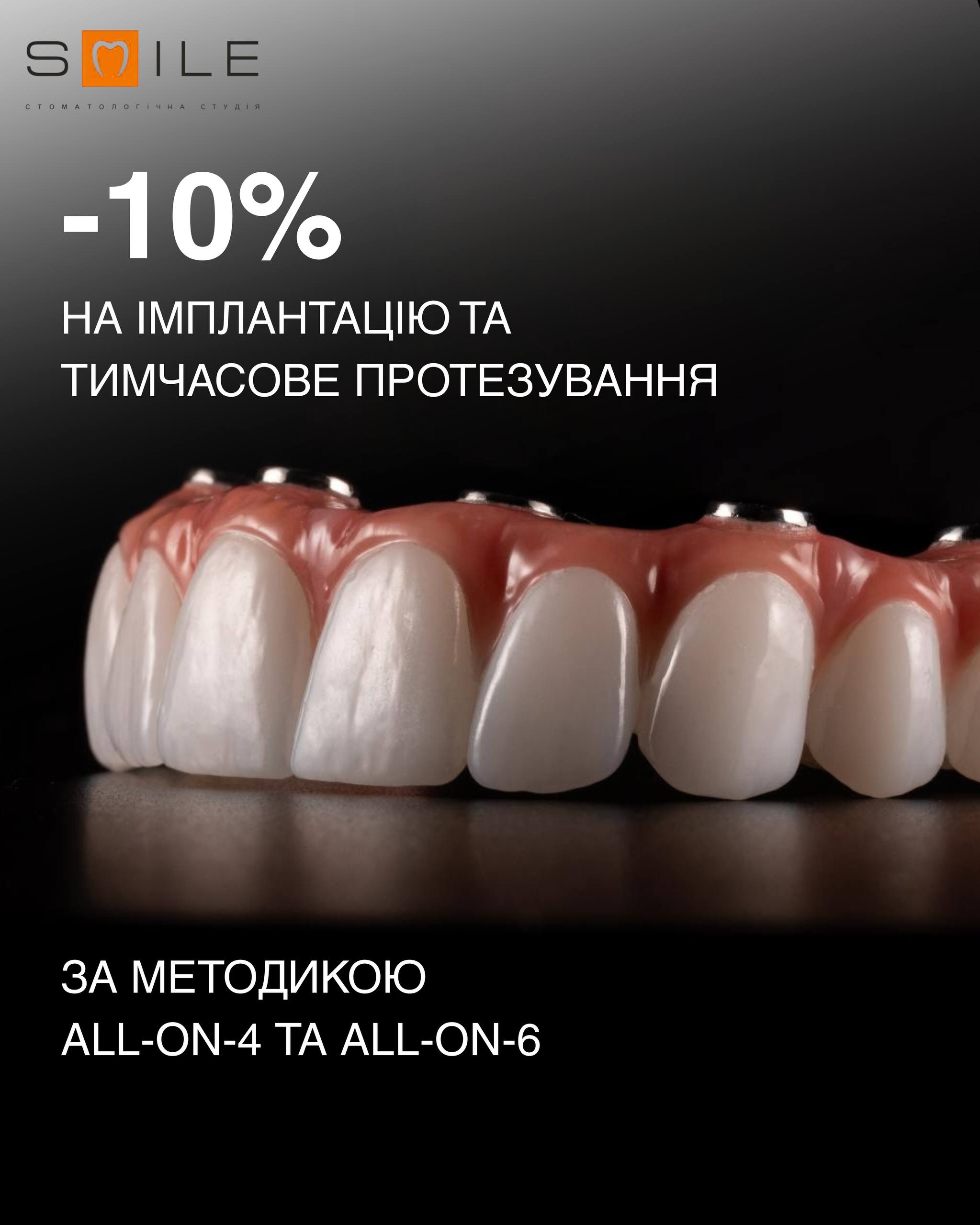 Только до 30.11.2025 получите новую улыбку по выгодной цене -10% на протезирование All-on-4/6.